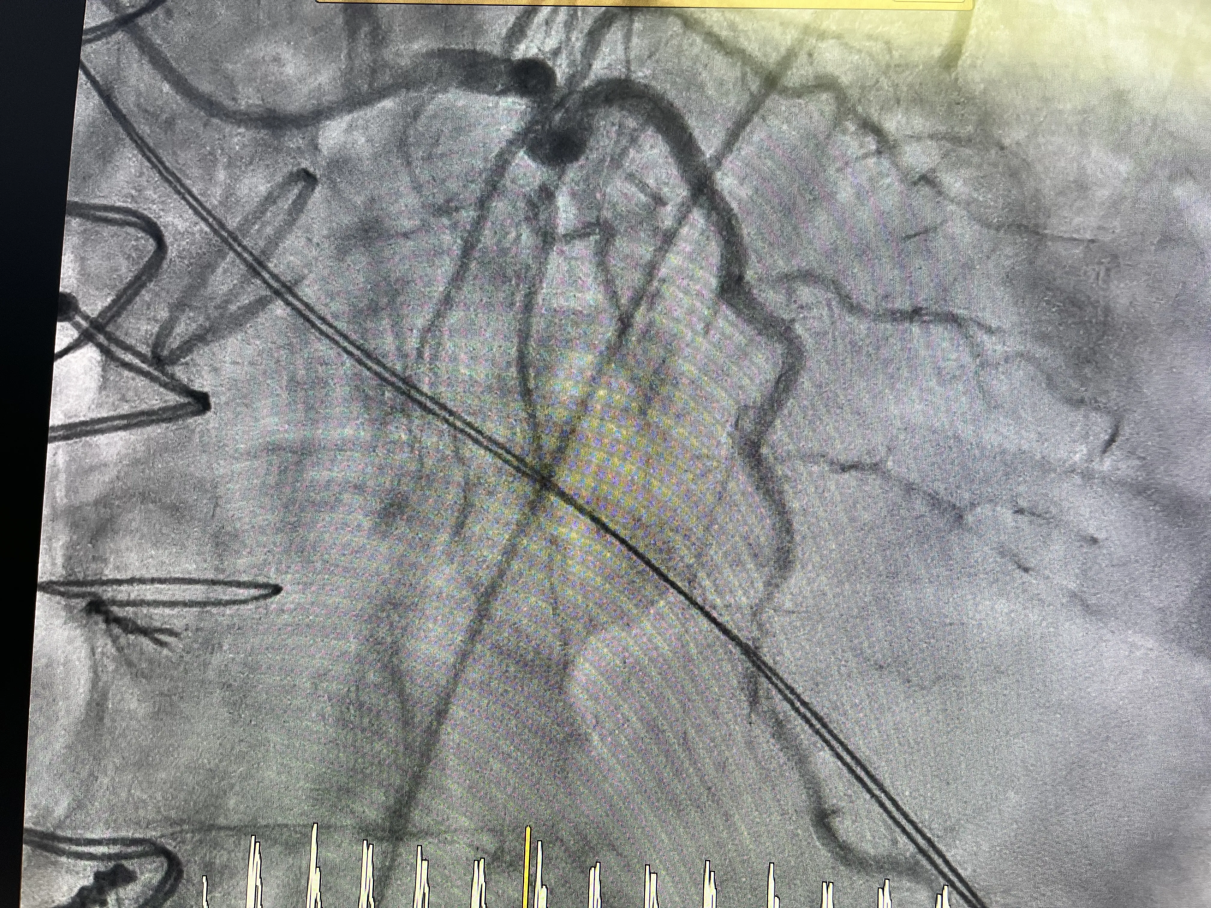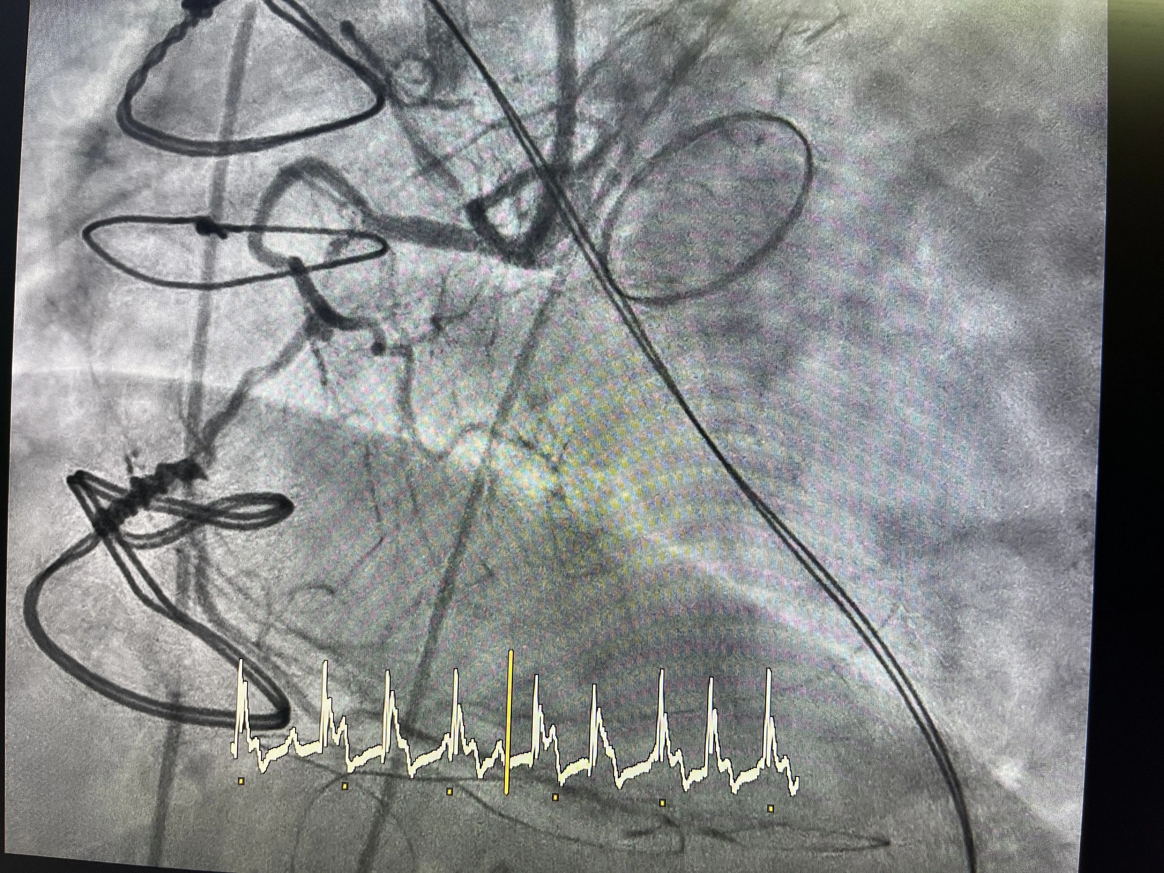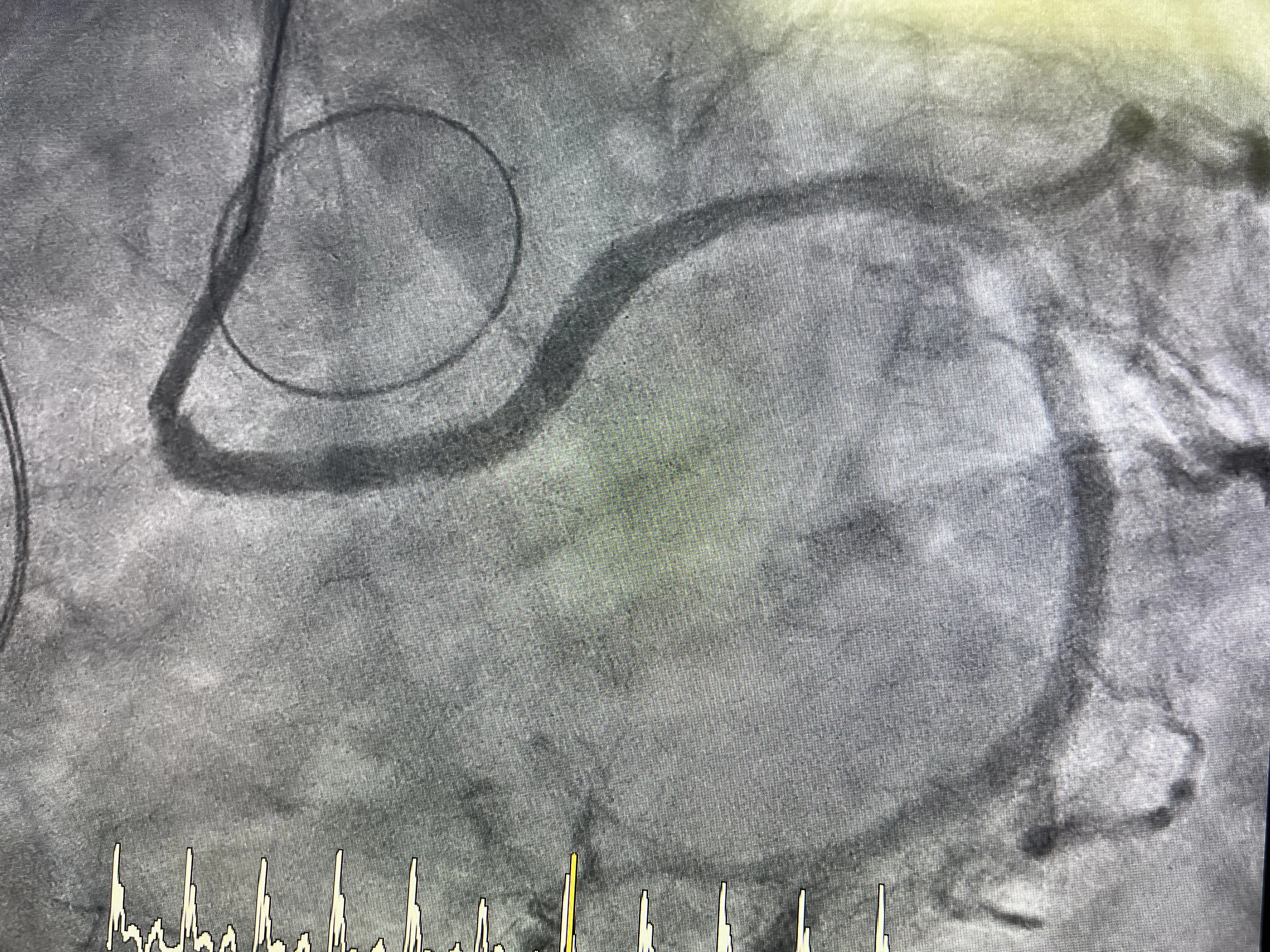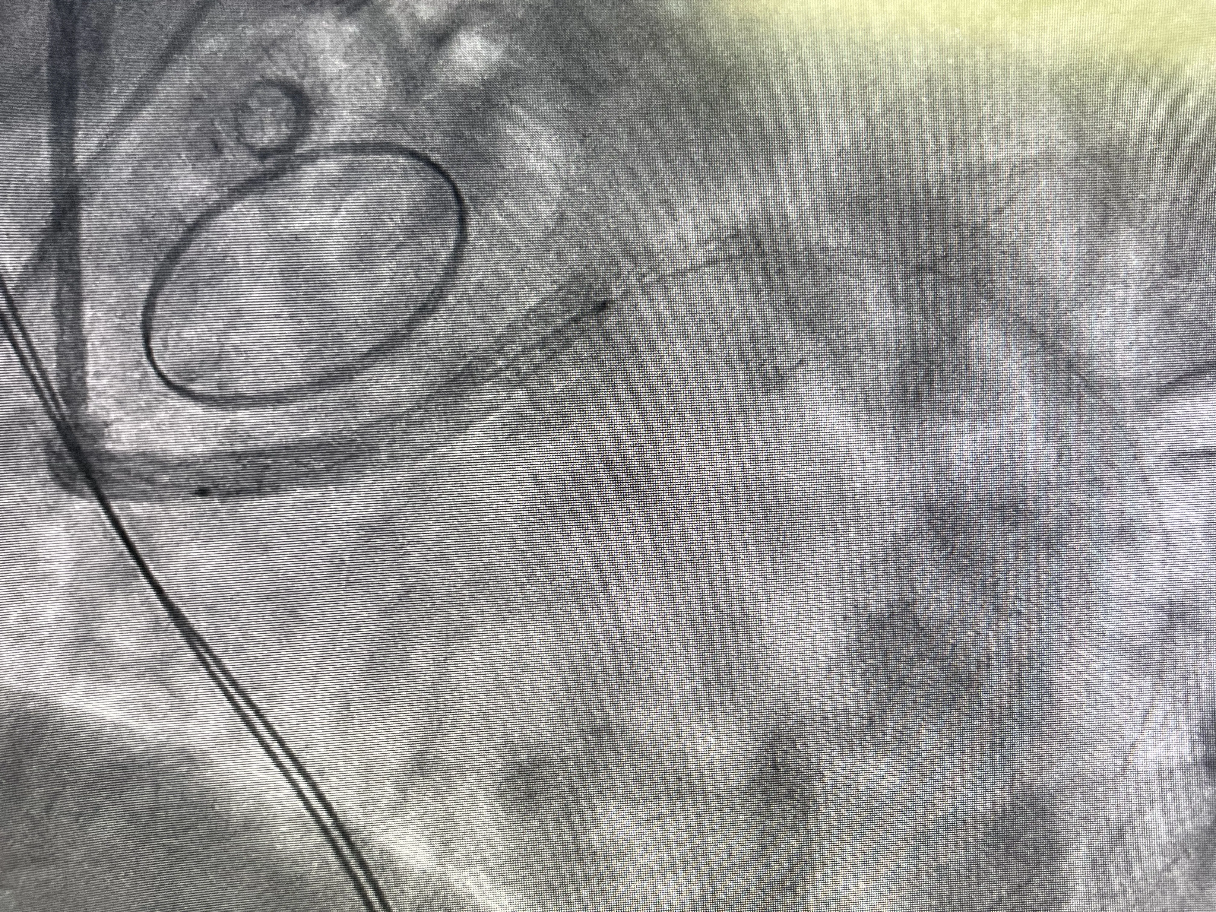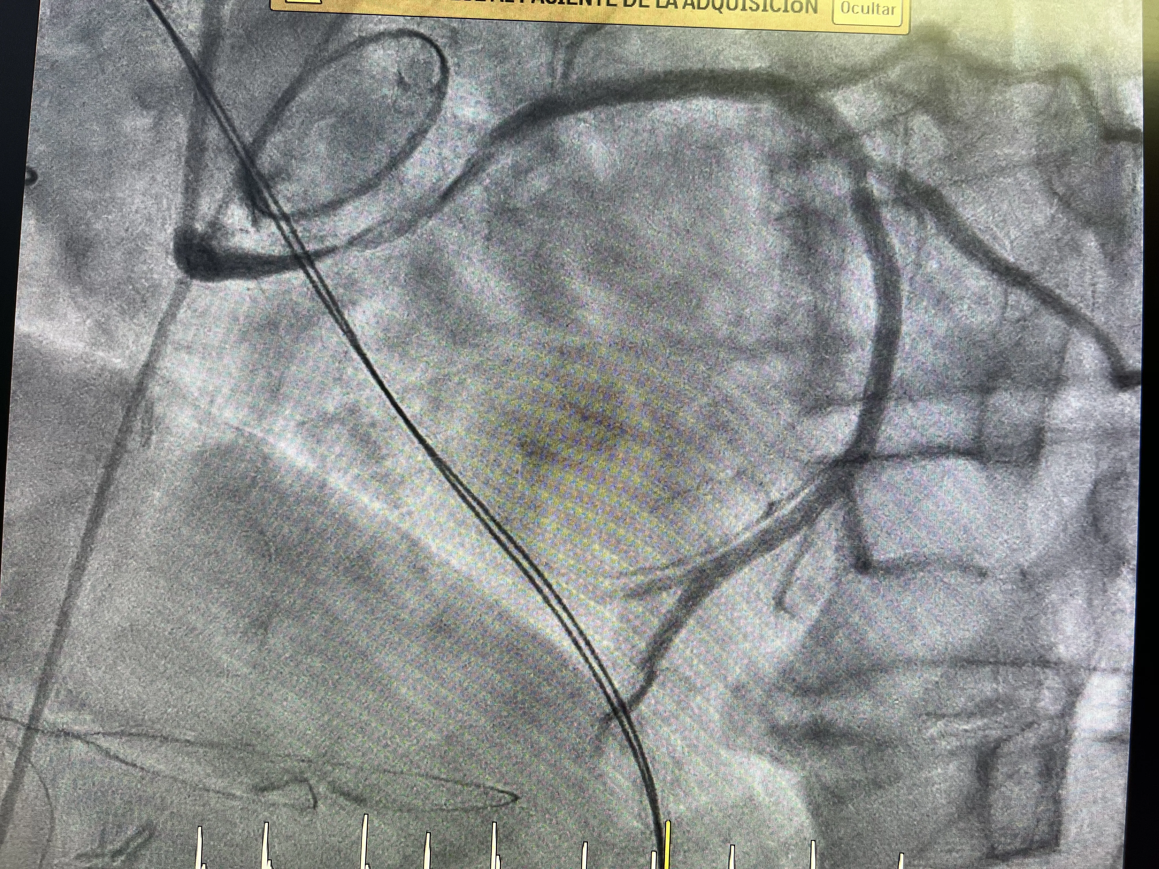 Este hallazgo explica de forma directa el infarto en territorio inferior y la inestabilidad hemodinámica del paciente. El flujo coronario hacia la zona irrigada por la circunfleja está comprometido de forma crítica, generando isquemia severa. En ese momento, el reto del equipo de hemodinámica es doble: por un lado, confirmar que la causa es mecánica y, por otro, intentar restablecer el flujo a pesar de la presencia de la válvula mecánica. No se trata de una angioplastia convencional, sino de una situación límite condicionada por una complicación quirúrgica.
