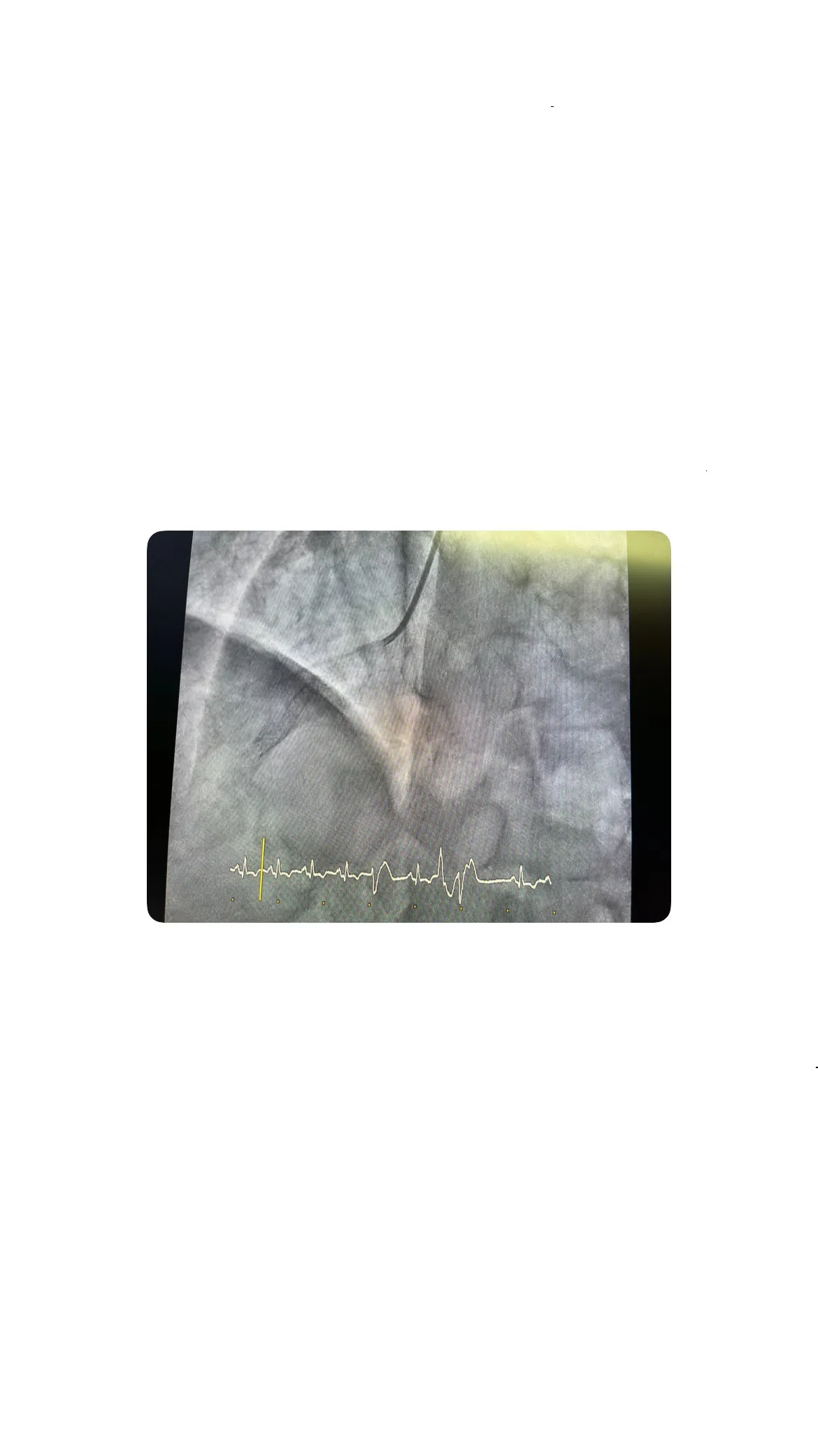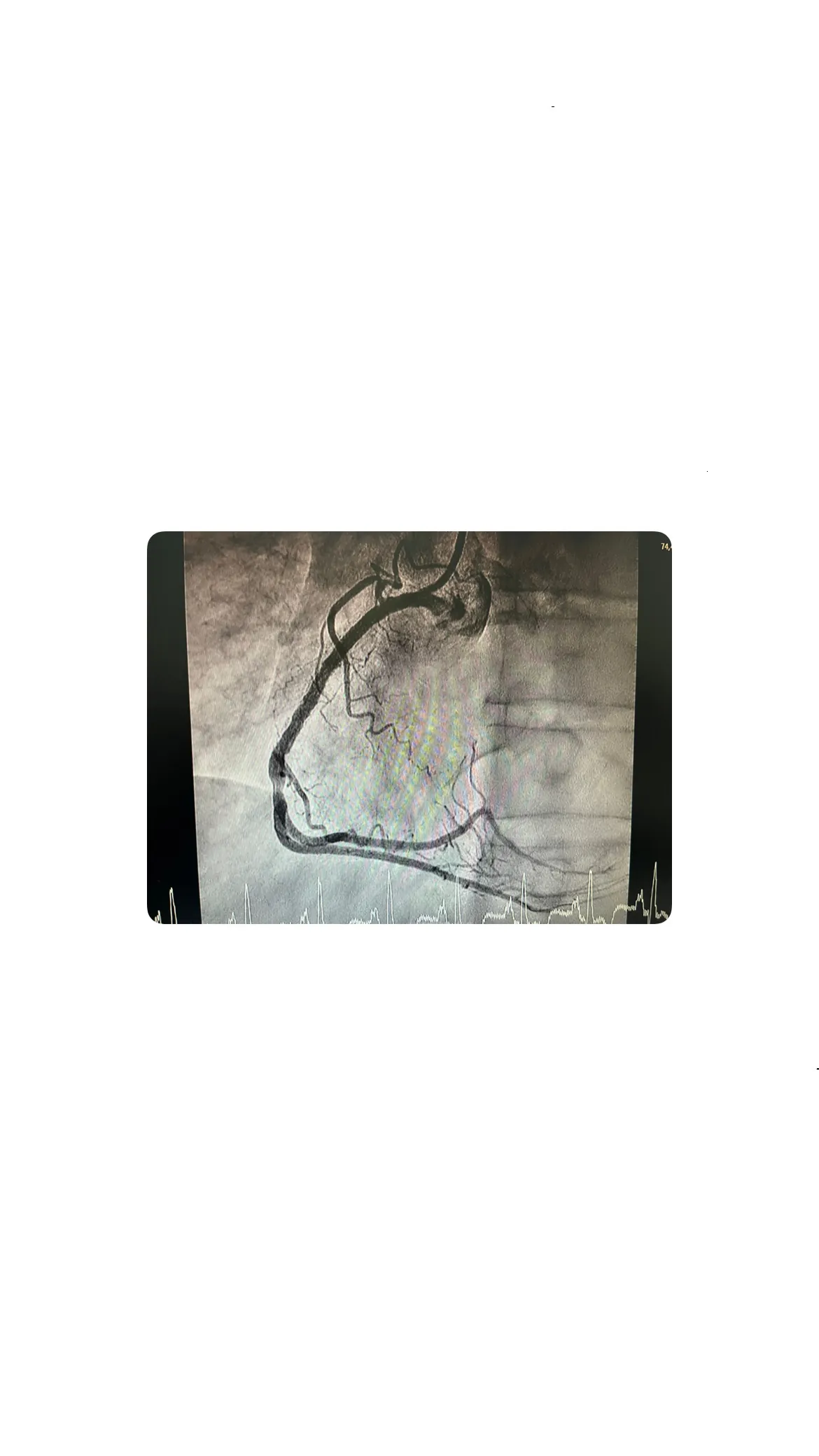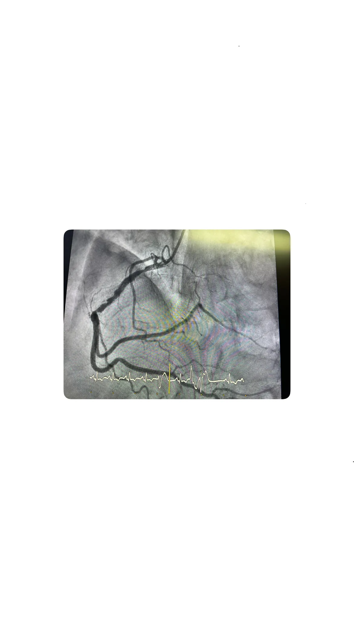 Durante el cateterismo realizado en la unidad de hemodinámica cardiovascular, se descubrieron detalles importantes sobre el estado del paciente. Este hombre, procedente de Georgia, ya había sido sometido a la colocación de varios stents. El cateterismo confirmó que tenía un stent permeable en la arteria descendente anterior (DEA) y una reestenosis en el stent de la coronaria derecha.